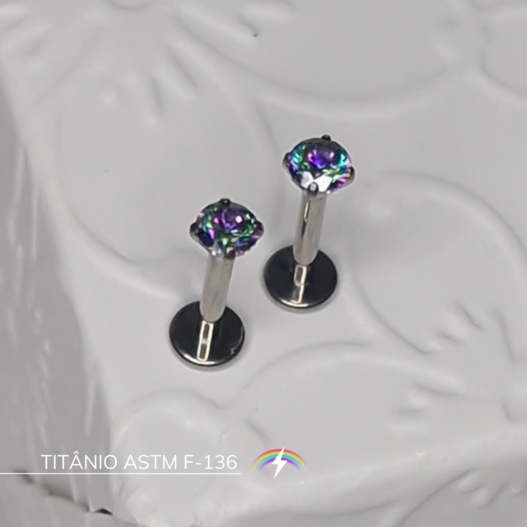 O Titânio é um metal de alta qualidade ideal para novas perfurações ou em processo de cicatrização devido à sua resistência, leveza e biocompatibilidade (inclusive é o material usado em implantes cirúrgicos). Ele é classificado como hipoalergênico, o que significa que é seguro para peles sensíveis por não causar reações alérgicas ou irritações.